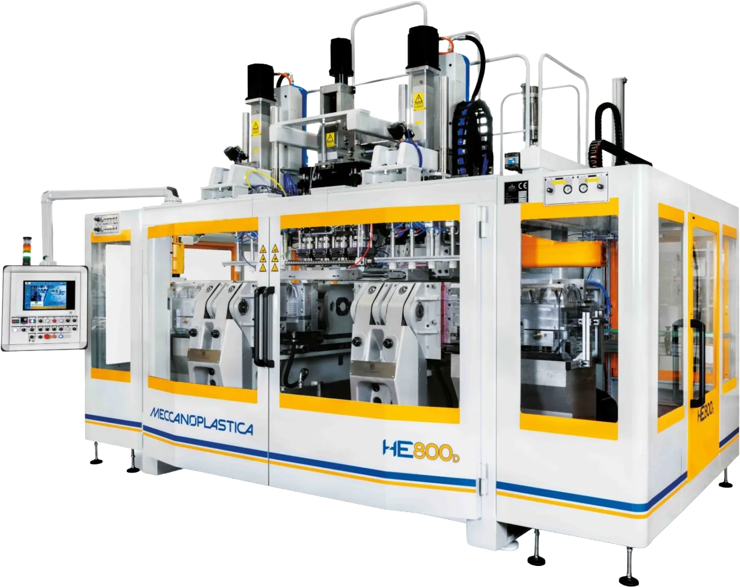 Firma Meccanoplastica oferuje szeroką gamę maszyn do wytłaczania z rozdmuchem (EBM). Wszystkie urządzenia wyposażone są w innowacyjny system zamykania formy, zapewniający równomierne rozłożenie siły zwarcia oraz utrzymanie równoległości formy, co przekłada się na wysoką jakość i powtarzalność produkcji. Serie MP oraz HL obejmują maszyny hydrauliczne i hybrydowe, przeznaczone do produkcji opakowań o pojemności od 5 ml do 15 l. Seria HE to w pełni elektryczne maszyny przeznaczone do produkcji opakowań o pojemności od 5 ml do 30 l, które umożliwiają znaczną redukcję zużycia energii przy jednoczesnym zwiększeniu wydajności produkcyjnej.